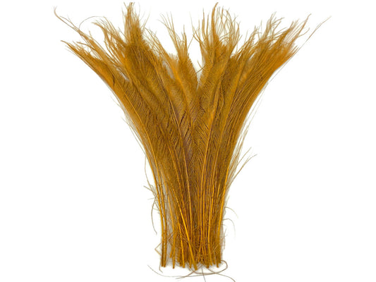 50 Pieces - Antique Gold Bleached & Dyed Peacock Swords Cut Wholesale Feathers (Bulk)