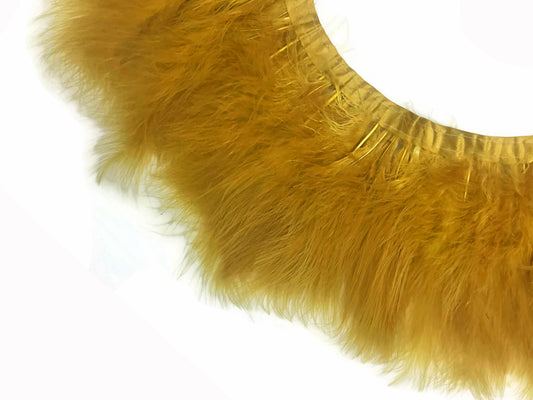 1 Yard - Old Antique Gold Marabou Turkey Fluff Feather Fringe Trim