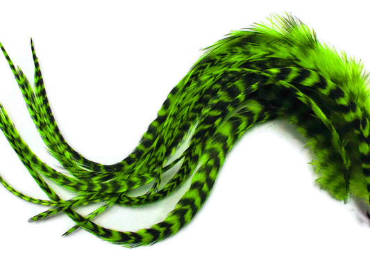 1 Dozen - Medium Lime Green Grizzly Rooster Saddle Whiting Hair Extension Feathers