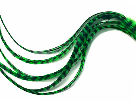 6 Pieces - Kelly Green Thick Long Grizzly Rooster Hair Extension Feathers