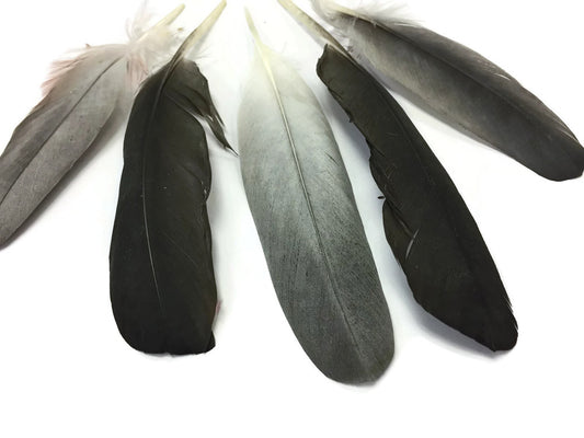 4 Pieces - Natural Black and Gray African Grey Parrot Wing Feathers - Rare-