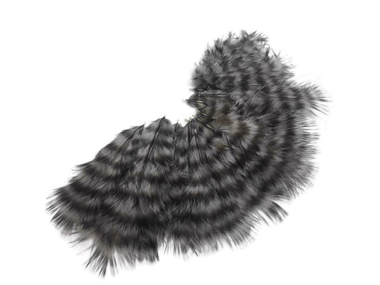 1 Dozen - Grey Dun Grizzly Mini Rooster Chickabou Fluff Whiting Hair Feathers