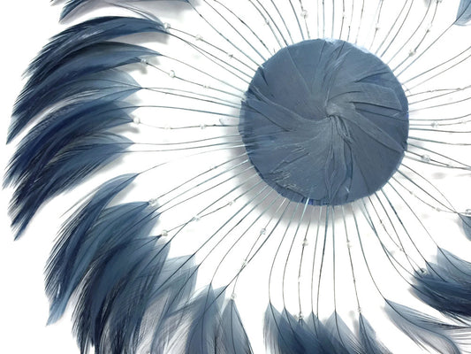 1 Piece - Dark Grey Whole Beaded Pinwheel Stripped Rooster Hackle Feather Plates