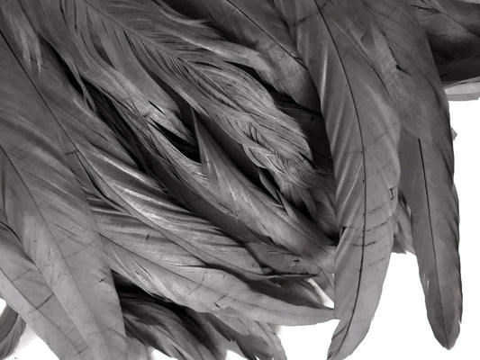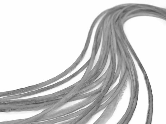 10 Pieces - Solid Gray Thin Long Rooster Hair Extension Feathers
