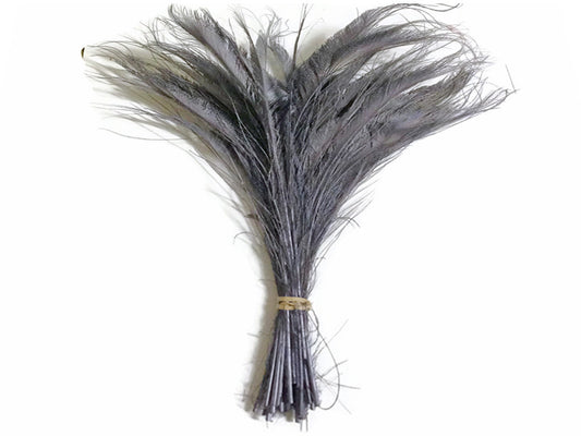5 Pieces – Silver Gray Bleached & Dyed Peacock Tail Eye Feathers 10-12” Long