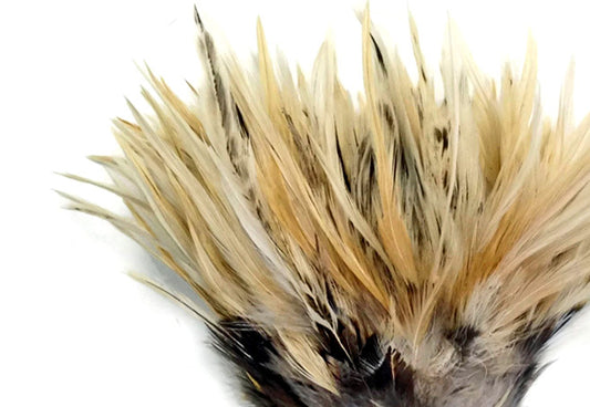 4 Inch Strip - 4-6" Natural Cream Strung Chinese Rooster Saddle Feathers