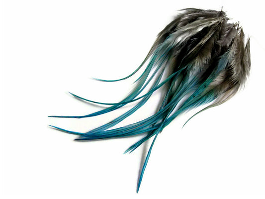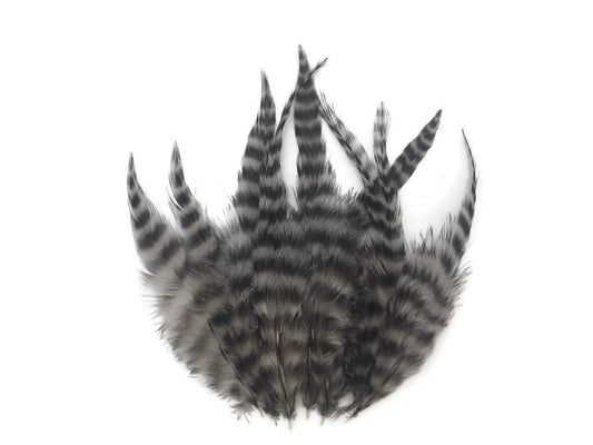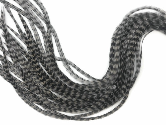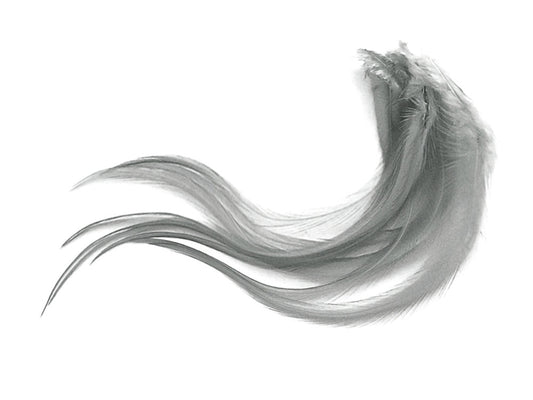 10 Pieces - Grey Dun Grizzly Thin Long Rooster Hair Extension Feathers