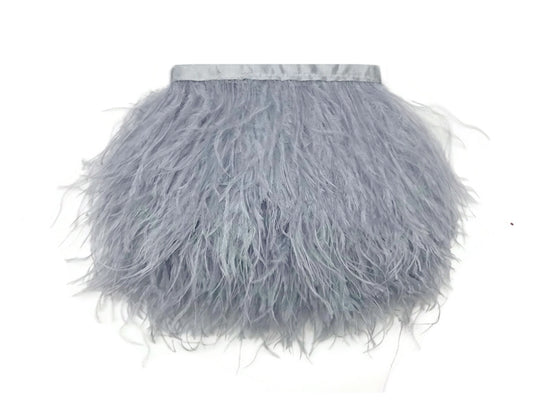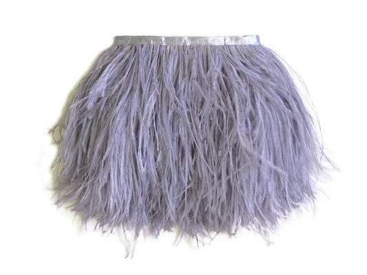 6 Inch Strip - Grey Ostrich Fringe Trim Feather