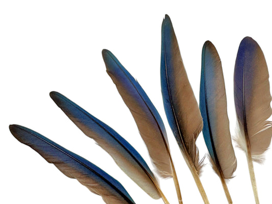 4 Pieces - Iridescent Blue Conure Parrot Small Wing Feathers -Rare-