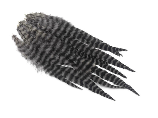 1 Dozen - Medium Grey Dun Grizzly Rooster Saddle Whiting Hair Extension Feathers