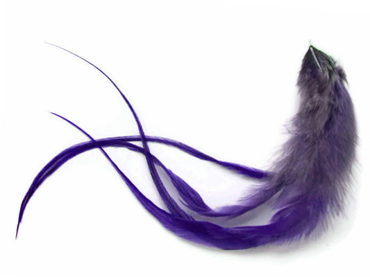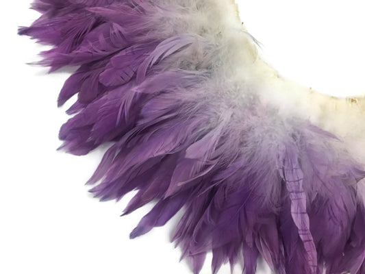 2 Inch Strip - Purple Silver Two Tone Bleached & Dyed Strung Rooster Schlappen Feathers