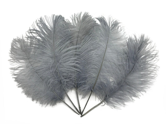 10 Pieces - 12-16" Silver Gray Dyed Ostrich Tail Fancy Feathers