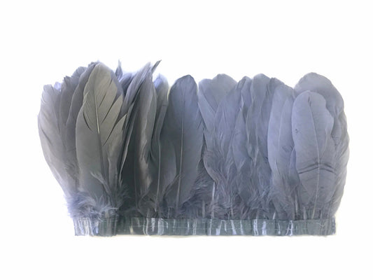 1 Yard - Silver Gray Goose Pallet Parried Dyed Feather Trim