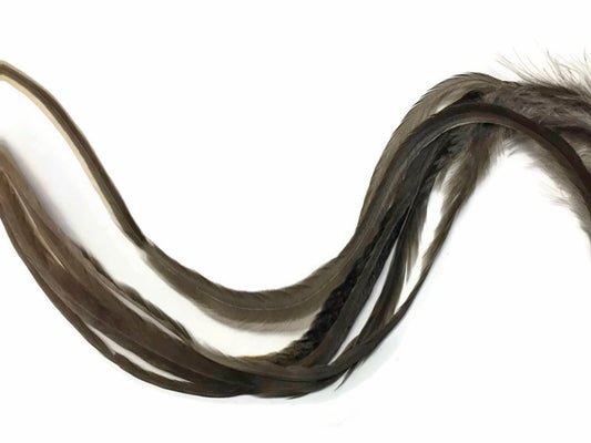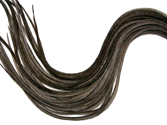 10 Pieces – Solid Dark Dun Thin Long Whiting Farm Rooster Saddle Hair Extension Feathers