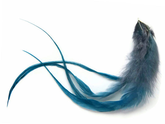 6 Pieces - Solid Dark Dun Thick Long Rooster Hair Extension Feathers