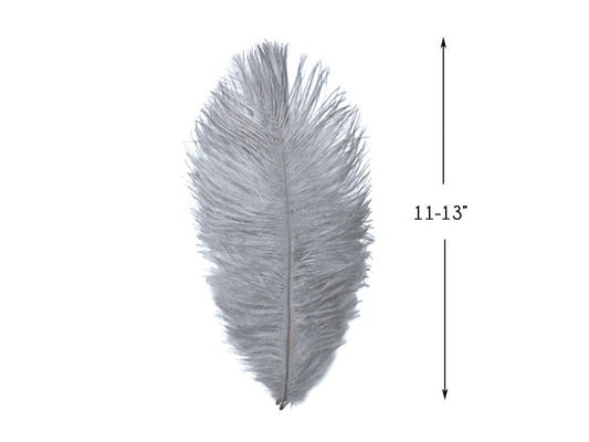 10 Pieces - 11-13" Silver Gray Bleached & Dyed Ostrich Drabs Body Feathers