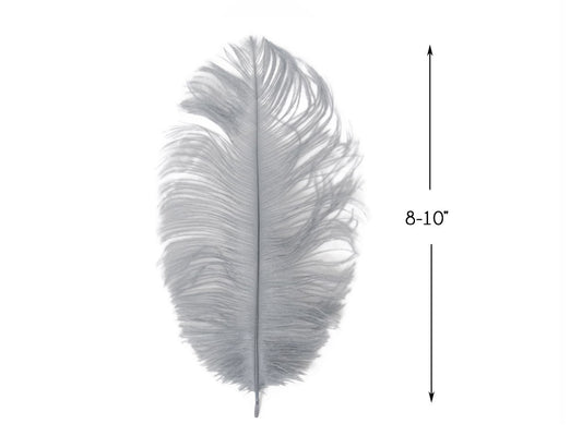 100 Pieces - 8-10" Silver Gray Ostrich Dyed Drab Body Wholesale Feathers (Bulk)