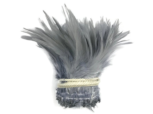 4 Inch Strip - 6-7" Grey Chinchilla Strung Chinese Rooster Saddle Feathers