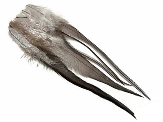 1 Dozen - Medium Solid Natural Dark Dun Rooster Saddle Whiting Hair Extension Feathers