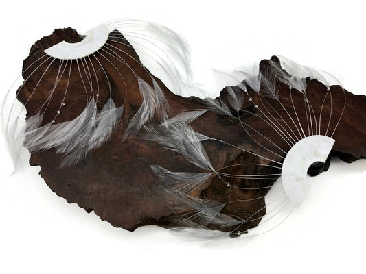 1 Piece - Silver Gray Half Beaded Pinwheel Stripped Rooster Hackle Feather Pads