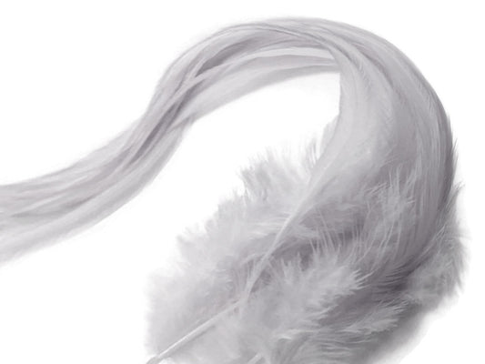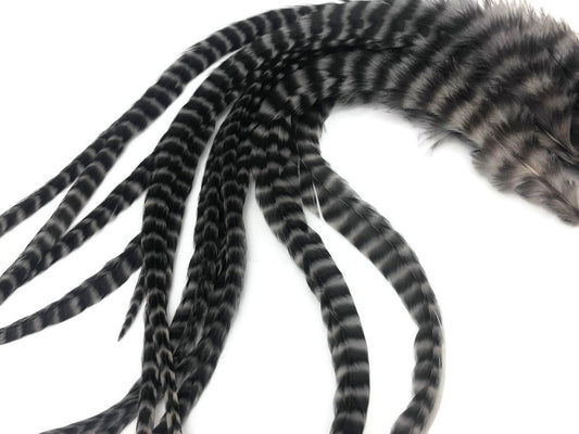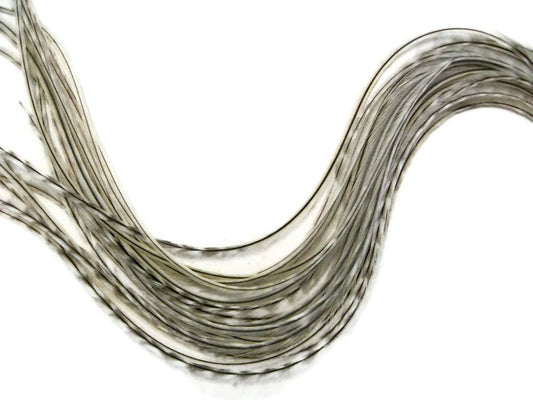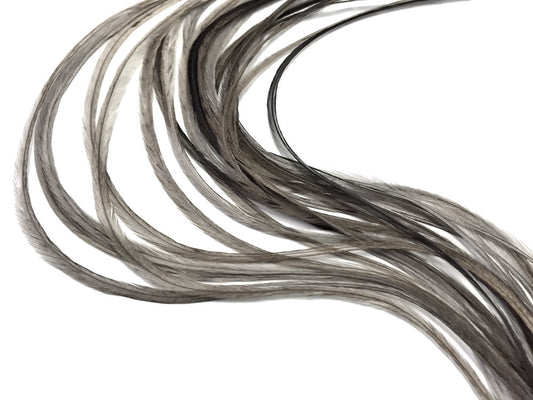 10 Pieces - Unique Grey Thin Long Grizzly Whiting Farm Rooster Saddle Hair Extension Feathers