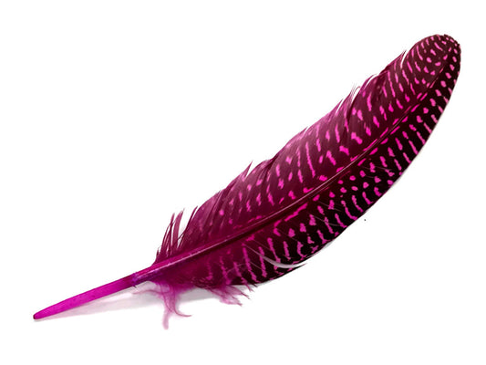 10 Pieces - Dyed Hot Pink Polka Dot Guinea Fowl Wing Quill Feathers