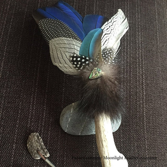 1 Yard - Peacock Blue Guinea Hen Plumage Feather Trim