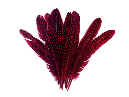 10 Pieces - Dyed Red Polka Dot Guinea Fowl Wing Quill Feathers