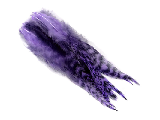 1 Dozen - Medium Lavender Grizzly Rooster Saddle Whiting Hair Extension Feathers