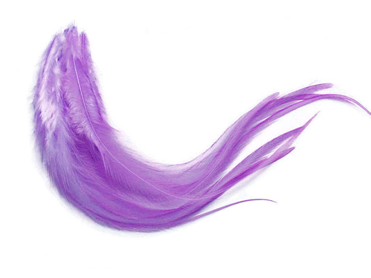 1 Dozen - Medium Solid Lavender Rooster Saddle Whiting Hair Extension Feathers