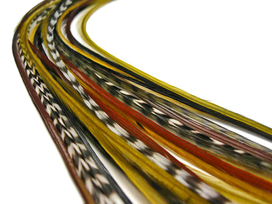 12 Strands - Warm Mix Thin Long Grizzly Whiting Farm Rooster Salon Hair Extension Feathers