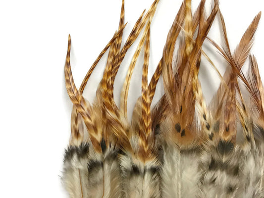 50 Pieces - Natural Tone Medium Length Rooster Saddle Whiting Hair Extension Wholesale Feathers (Bulk)