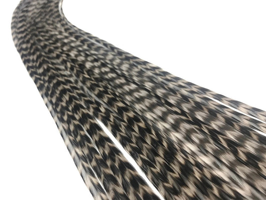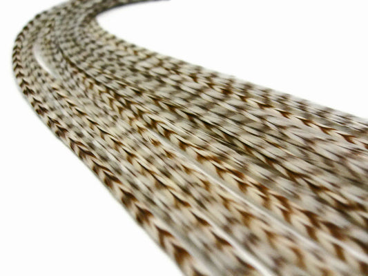 12 Strands - Sandy Mix Thin Long Grizzly Whiting Farm Rooster Salon Hair Extension Feathers