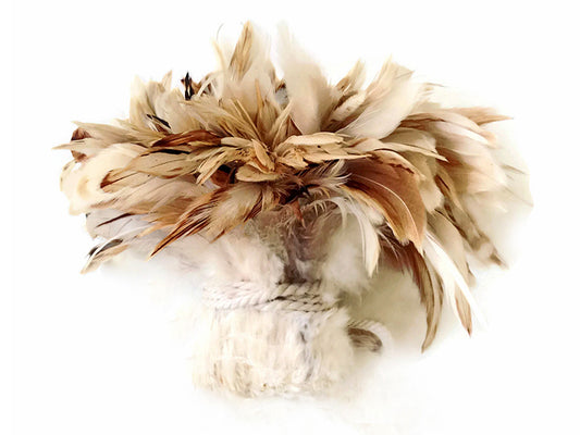 1 Pack - 8-10" Natural Brown Chinchilla Mix Coque Tail Strung Rooster Feathers 0.25 Oz.