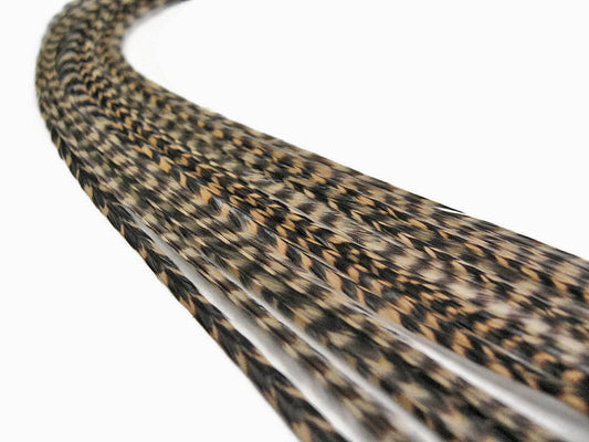 6 Pieces - XL Tan Thin Grizzly Rooster Hair Extension Feathers
