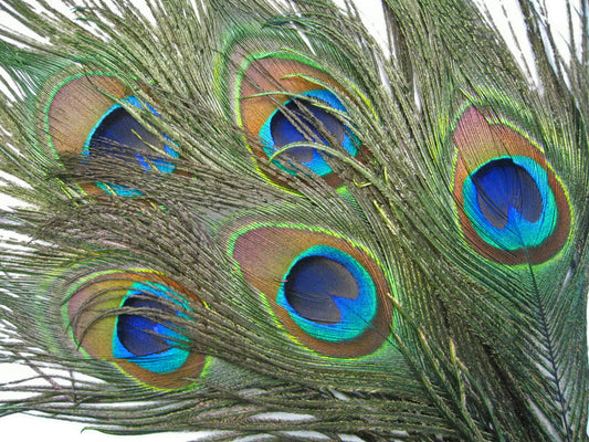 Explore our extensive range of premium peacock tail and eye feathers, available in both natural iridescent hues and vibrant dyed options. Whether you're looking for feathers as small as 3 inches or as grand as 50 inches, we have the perfect selection for you. Ideal for weddings, centerpieces, costumes, interior design, jewelry, and more, our high-quality peacock feathers are a favorite among crafters and decorators alike.