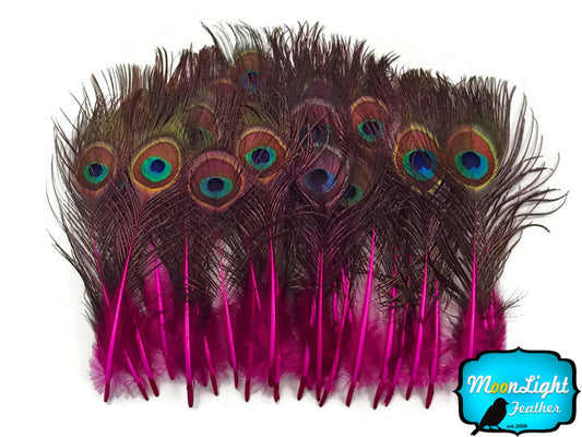 10 Pieces - Hot Pink Mini Natural Peacock Tail Body Feathers With Eyes