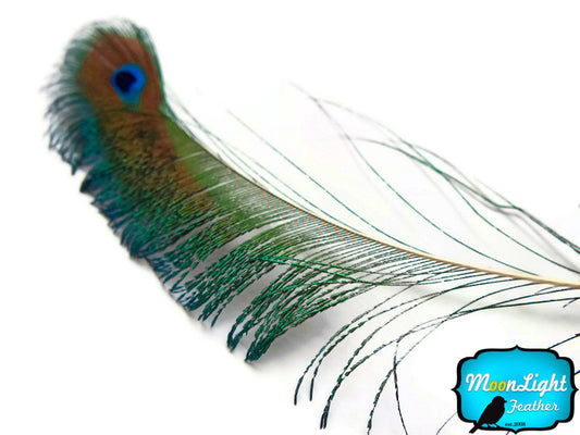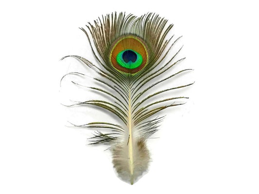 10 Pieces - Stripped Natural Green Peacock Tail Eye Feathers