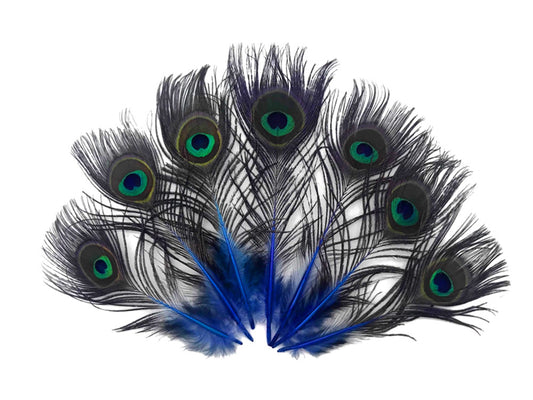 10 Pieces - Royal Blue Mini Natural Peacock Tail Body Feathers With Eyes