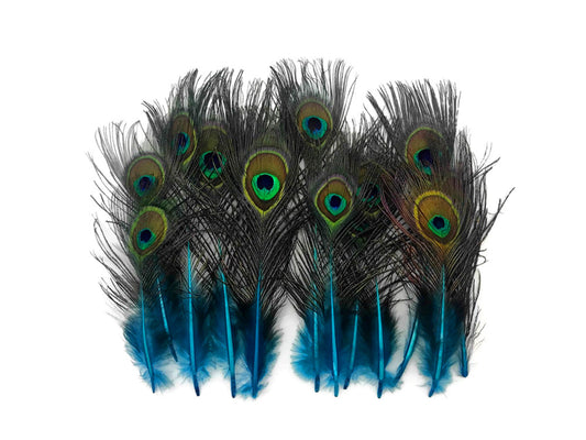 10 Pieces - 10-12" Turquoise Blue Dyed Over Natural Peacock Tail Eye Feathers