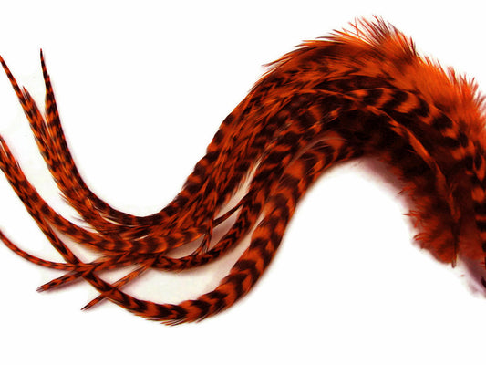 6 Pieces - XL Orange Thick Long Grizzly Whiting Farm Rooster Saddle Hair Extension Feathers
