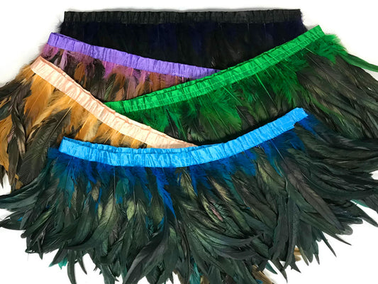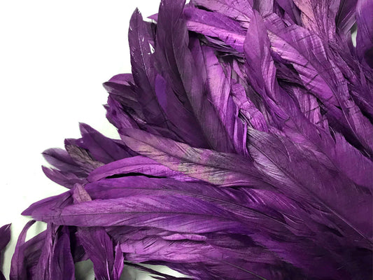 1 Yard - 10-12" Purple Dyed Over Natural Coque Tails Long Feather Trim (Bulk)