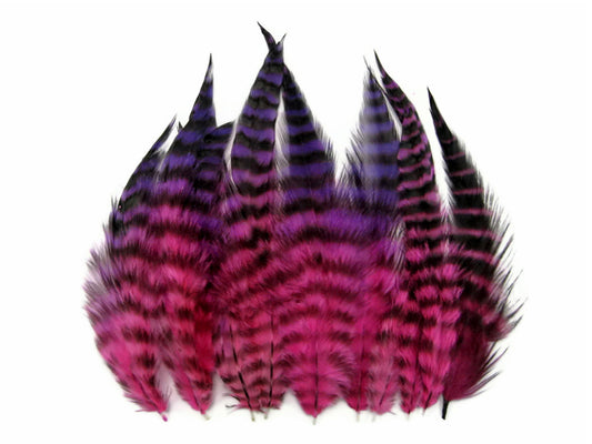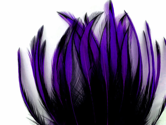 1 Dozen - Purple Stripped Rooster Neck Hackle Eyelash Feather