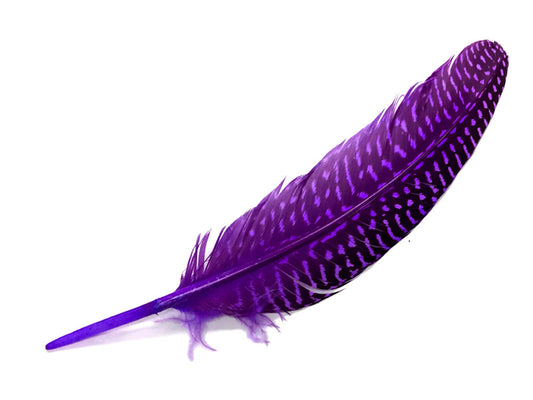 10 Pieces - Dyed Purple Polka Dot Guinea Fowl Wing Quill Feathers