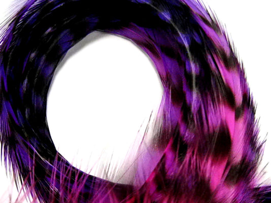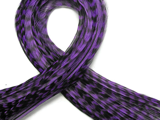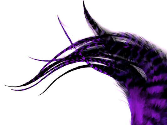 1 Dozen - Medium Purple Grizzly Rooster Saddle Whiting Hair Extension Feathers