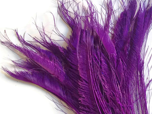1 Yard - 10-12" Purple Bleach & Dyed Coque Tails Long Feather Trim (Bulk)