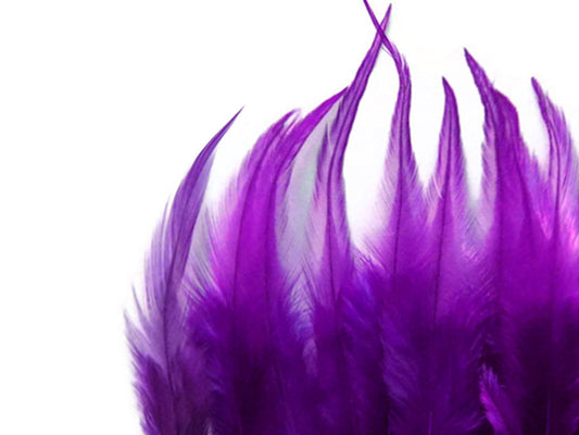 10 Pieces - Solid Purple Thin Long Rooster Hackle Hair Extension Feathers