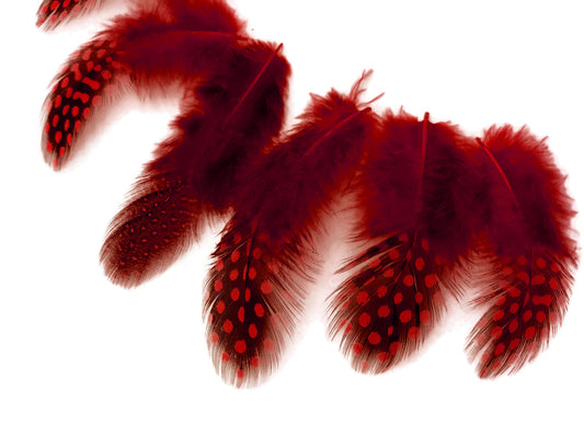 10 Pieces - Dyed Red Polka Dot Guinea Fowl Wing Quill Feathers