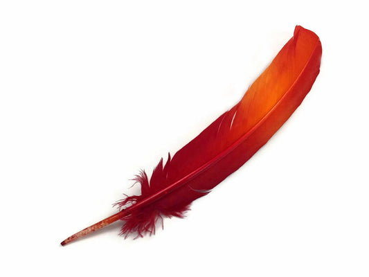 6 Pieces - Fiery Red Ombre Turkey Round Tom Wing Quill Feathers