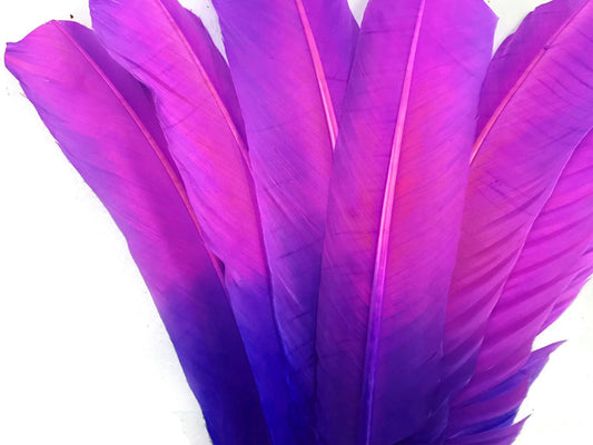 6 Pieces - Pink Purple Ombre Turkey Round Tom Wing Quill Feathers